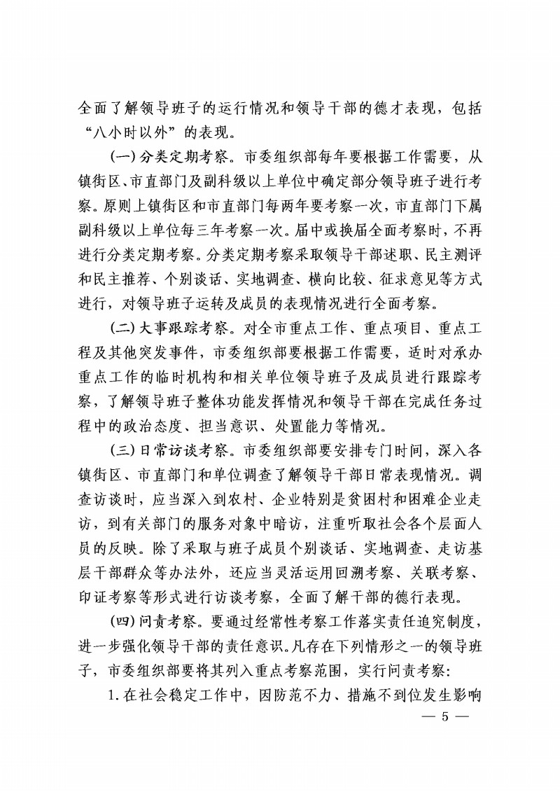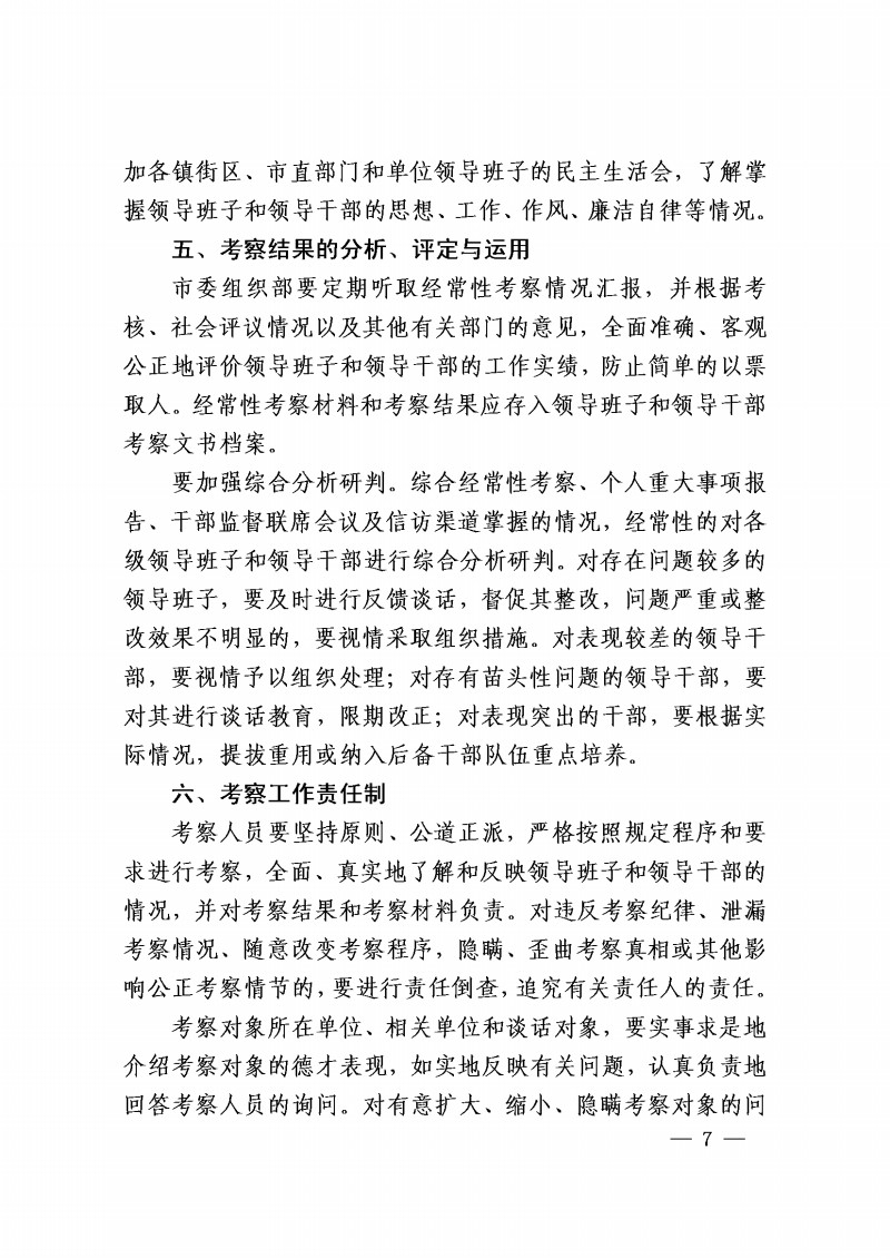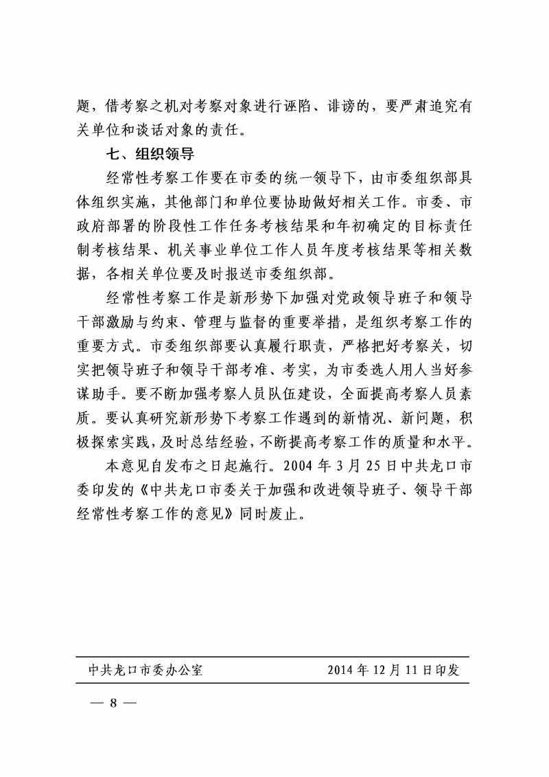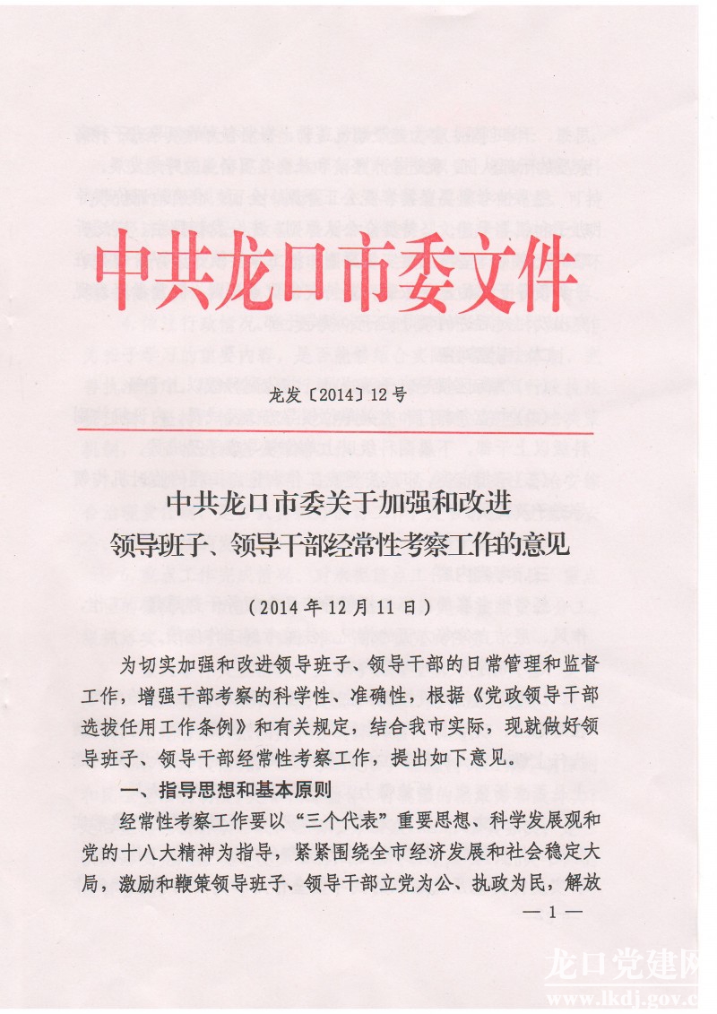 中共龙口市委关于加强和改进领导班子经常性考察工作意见
